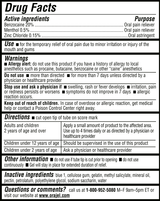 Baby oral gel ingredients. For temporary, symptomatic pain relief on mucous membranes, gums and lips. Use training toothbrush to apply the teething gel; The discontinuation is effective immediately and includes orajel™ medicated teething gel, orajel™ medicated nighttime teething gel, orajel™ medicated daytime & nighttime teething twin pack and.
